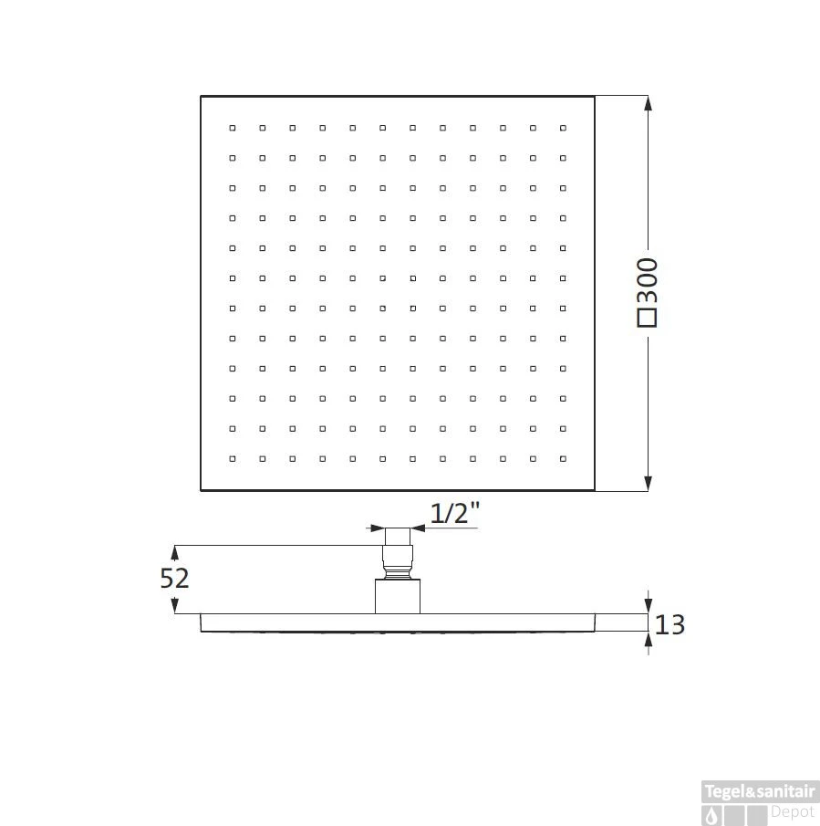 Specificaties Vierkante Hoofddouche Herzbach Living Spa 30 cm Koper: