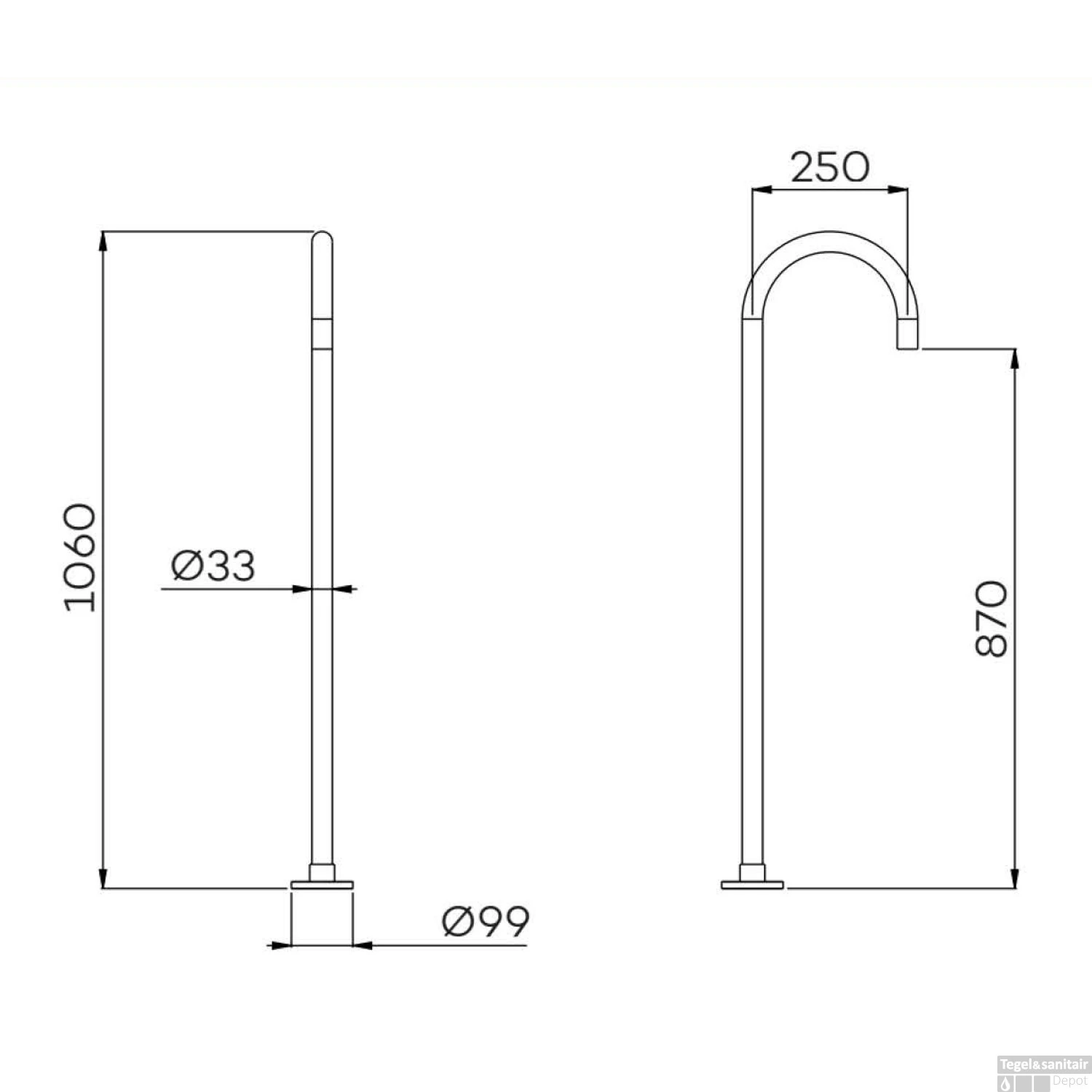 Vrijstaande Baduitloop Lagoo Garda Inbouw Messing Gunmetal PVD