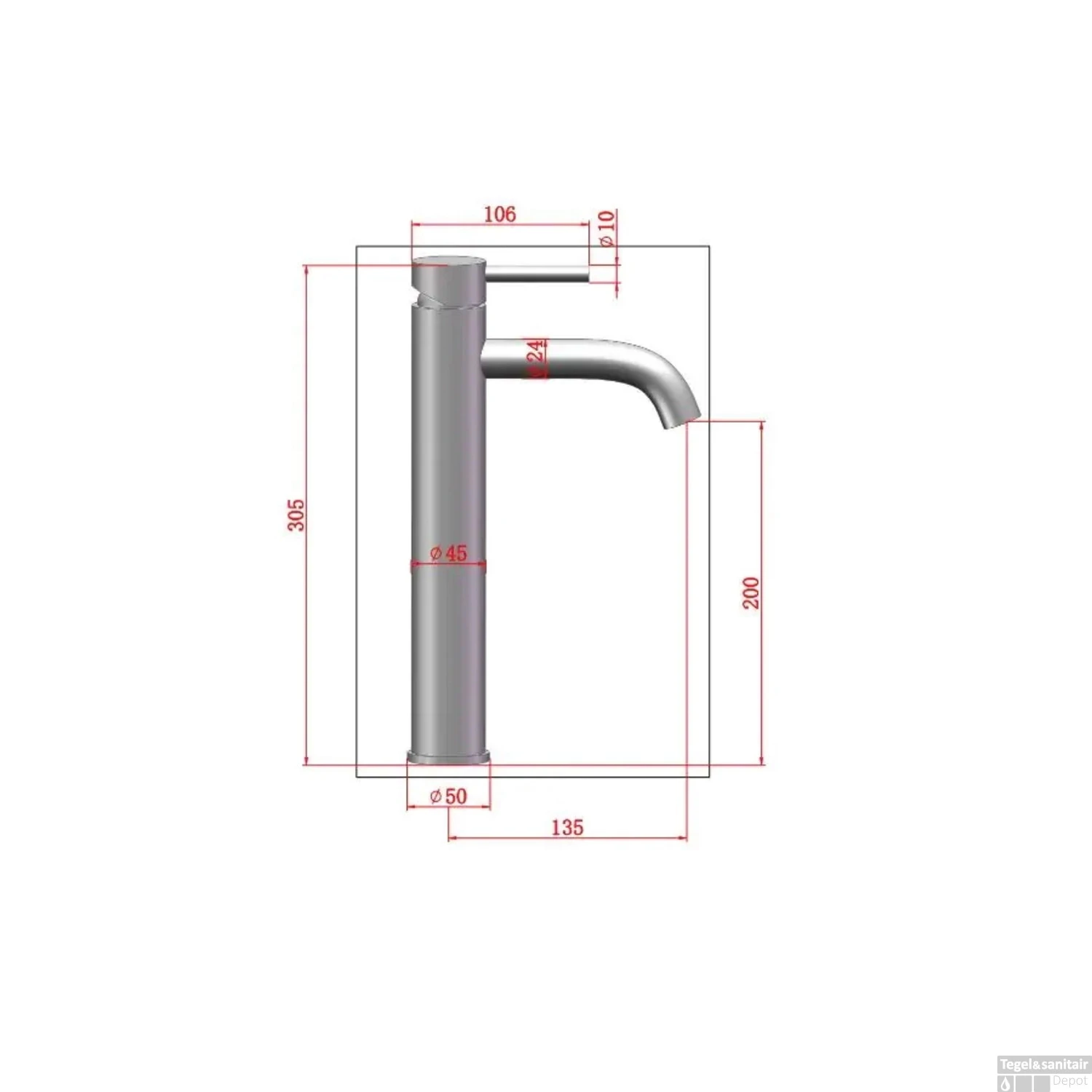 Deze stijlvolle hoge wastafelmengkraan uit de Plus serie van Boss & Wessing is speciaal ontworpen voor bij waskommen. De kraan en uitloop zijn hoger dan bij een normale wastafelkraan, waardoor deze perfect gecombineerd kan worden met een waskom. Deze mengkraan kunt u eenvoudig bedienen met ƩƩn hendel. Om het water te laten stromen haalt u de hendel omhoog. Beweeg de hendel naar links en rechts om de gewenste temperatuur te bepalen. Het warme en koude water wordt met elkaar vermengd tot de juiste temperatuur.