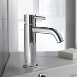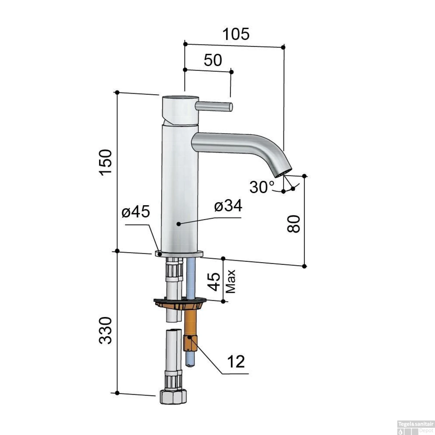 Een mooie wastafelkraan voor in uw toiletruimte of badkamer. De stijlvolle wastafelkraan is voorzien van een elegante uitloop dat met een mooie graad afbuigt. Heeft een ingebouwde perlator dat zorgt voor lucht in de waterstraal. Hiermee bespaard u water ondanks dat de kracht van het water niet verloren gaat, omdat hij zijn waterdruk behoudt. Alle kranen van Hotbath zijn volledig messing gegoten. Dat maakt de kraan duurzaam en betaalbaar. Verkrijgbaar in de kleur Chroom en Geborsteld Nikkel.