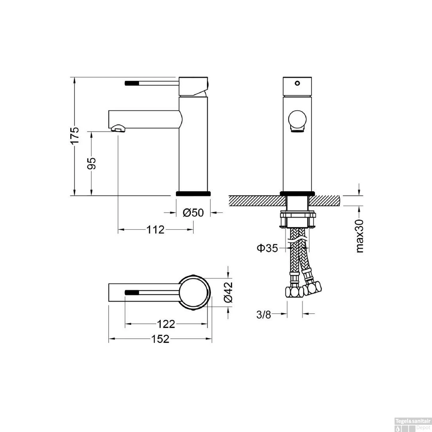 Specificaties Wastafelmengkraan 17.5 cm 1-hendel Chroom Best Design Falco:
