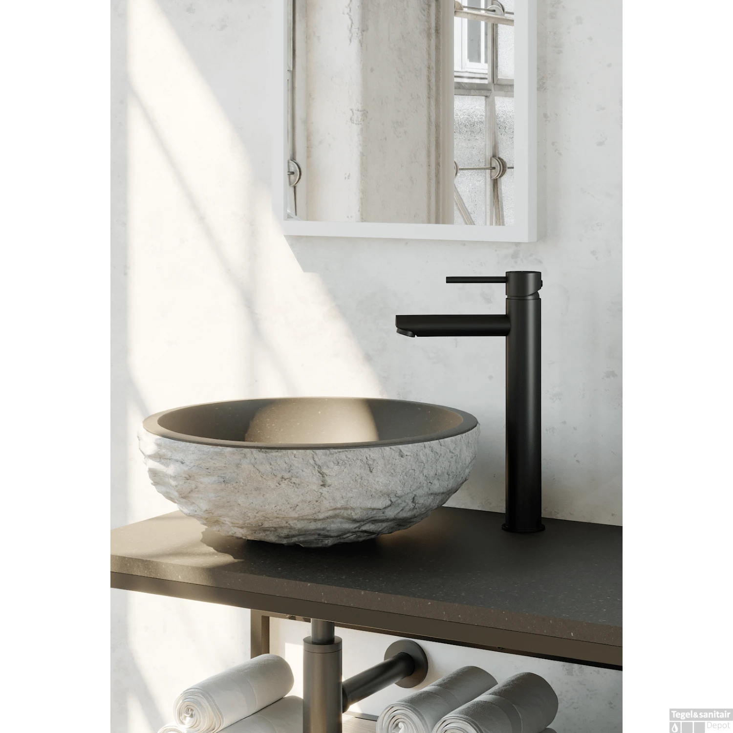 Wastafelmengkraan Brauer Black Edition Coldstart Opbouw Hoog Ronde Hendel Mat Zwart