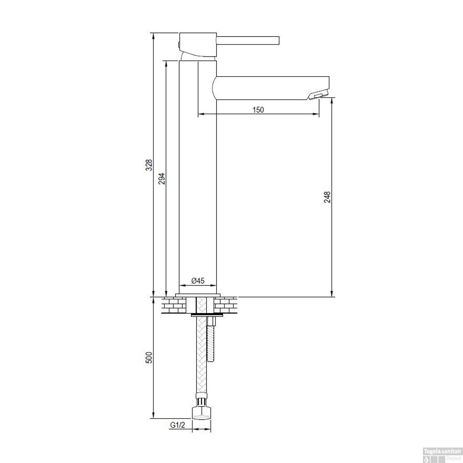 Specificaties Wastafelmengkraan Brauer Black Edition Coldstart Opbouw Hoog Ronde Hendel Mat Zwart: