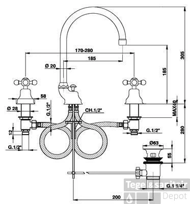 - Lengte uitloop 185 mm