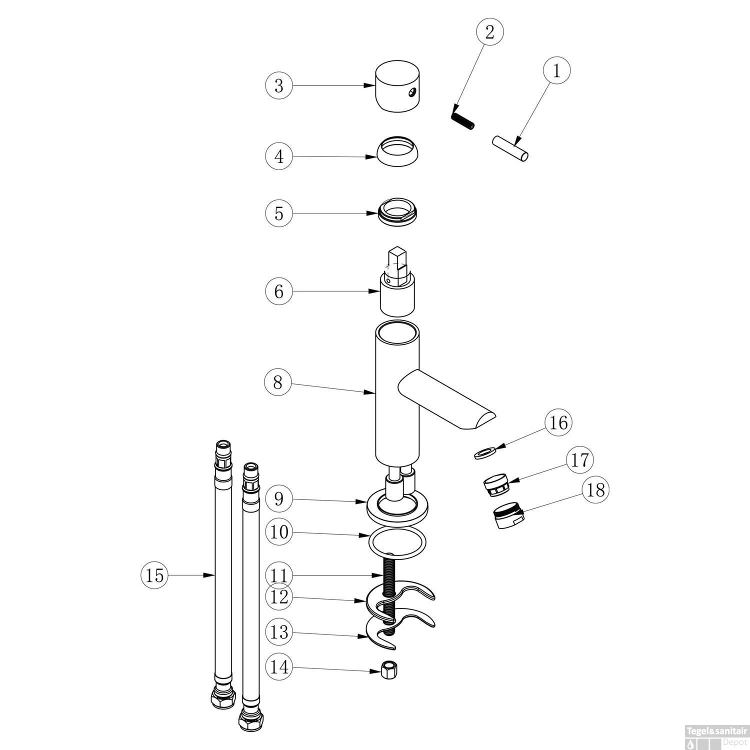 Specificaties Wastafelmengkraan Differnz Recht Koper