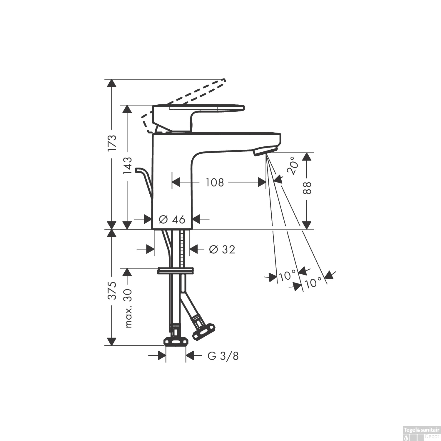 - Hoogte uitloop: 8.8 cm