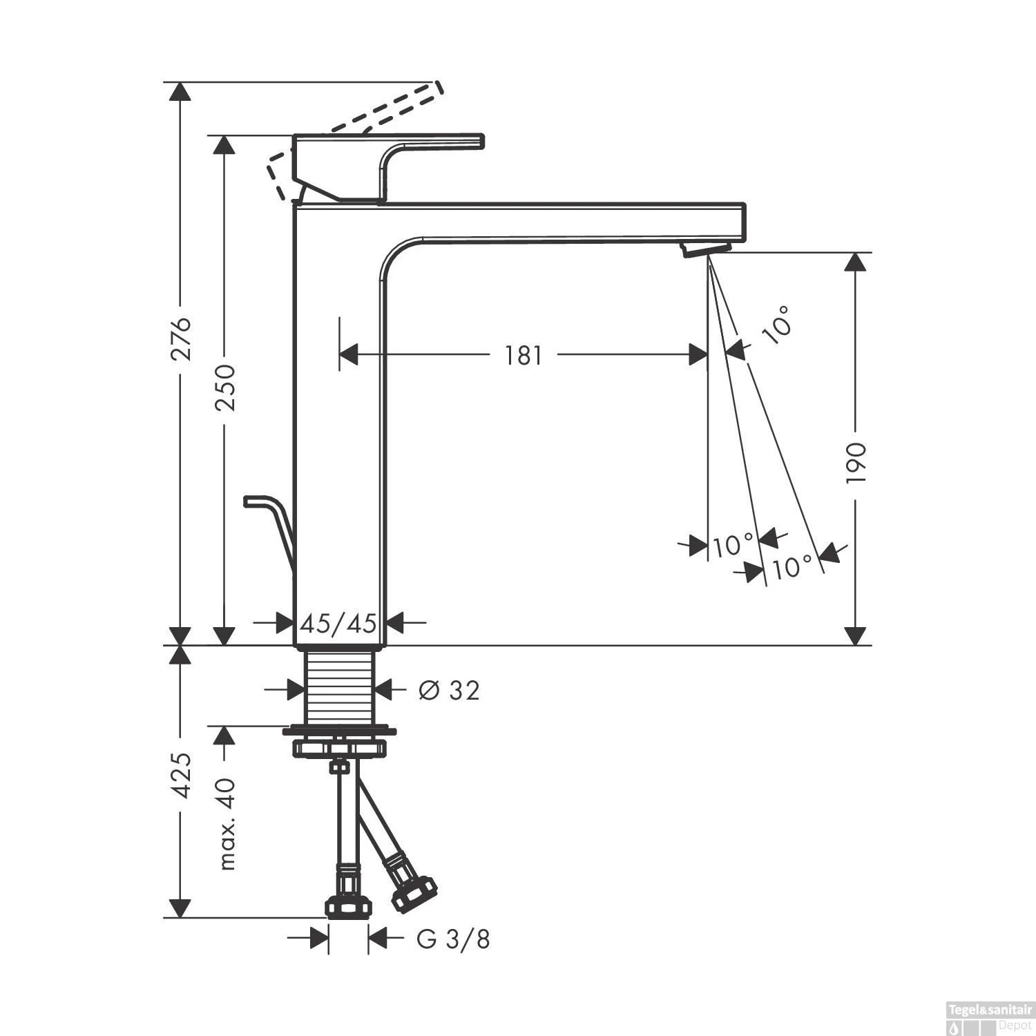 Specificaties Wastafelmengkraan HansGrohe Vernis Shape Eengreeps 230 Zinc Met Trekwaste Chroom:
