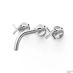 De kraan heeft een losse uitloop met aan weerszijden een kruisgreep. De kraan is gemaakt van messing. Dat is een zeer sterke staalsoort en goed bestand tegen schimmels en bacteriën. Daarom is het uitermate geschikt voor kranen. De bijgevoegde rozetten hebben een diameter van 5.8 cm om de gaten in de muur te bedekken en de draadaansluiting is 1/2″.