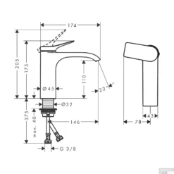 Specificaties Wastafelmengkraan Opbouw Uitloop 6.5 cm 1-hendel Mat Zwart Wiesbaden Style: