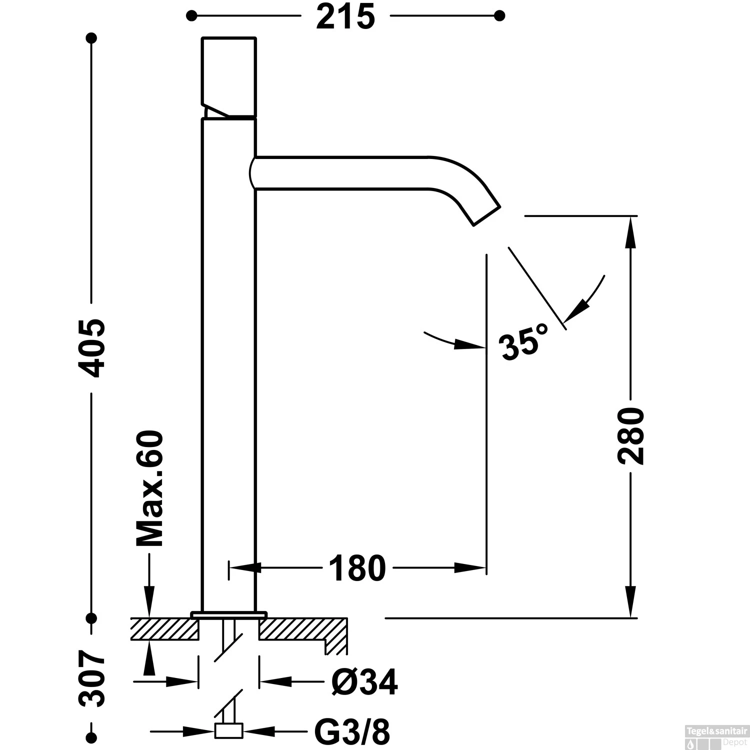 - Hoogte uitloop: 28 cm
