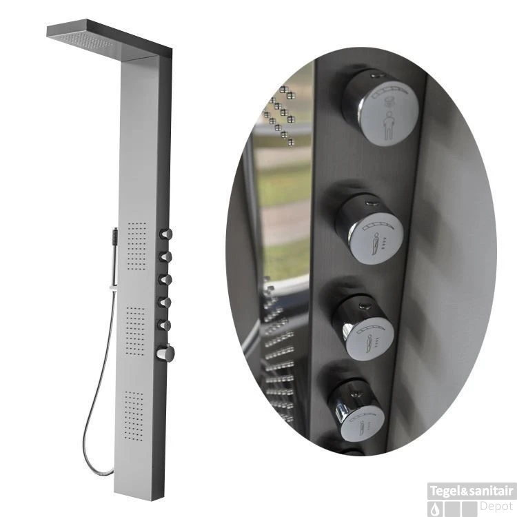 Specificaties Wiesbaden RVS douchekolom Ohio met thermostatische kraan: