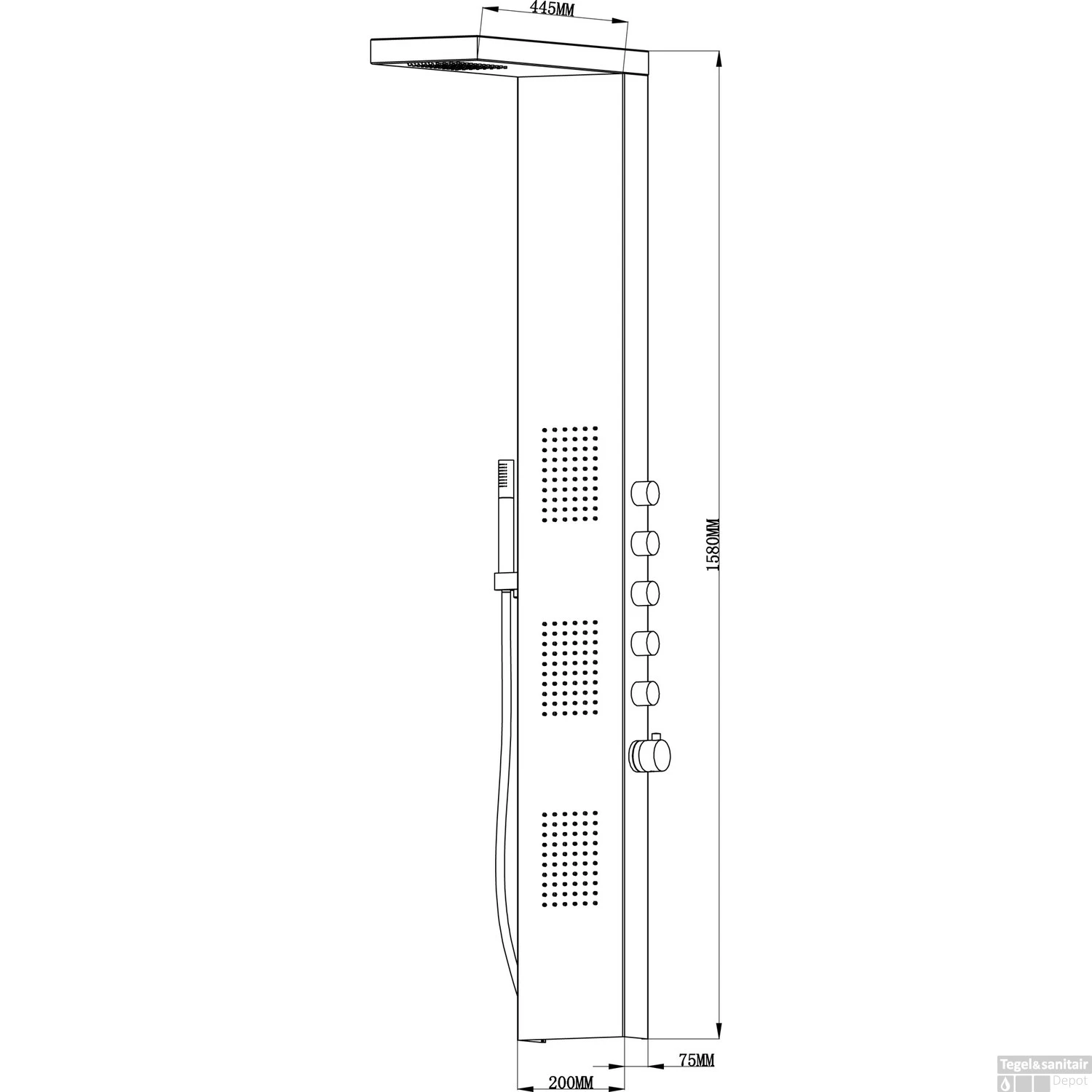 Deze luxe douchekolom is van het merk Wiesbaden en is stijlvol en modern. De douchekolom is voorzien van 3 vertical douches, 1 horizontale hoofddouche en een handdouche. De vormgeving is modern en stijlvol en zorgt voor een mooie uitstraling in uw badkamer. Door de verschillende wateruitgangen die los te bedienen zijn kan u optimaal genieten van deze douchekolom. De afmetingen zijn 158 x 20 cm en de douchekolom word geleverd met 5 stopkranen die onafhankelijk van elkaar te bedienen zijn.
